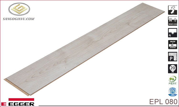 Điểm đặc biệt của EPL080 chính là công nghệ của nó: Một mặt hàng siêu chịu nước có thể ngâm từ 5 – 7 ngày mà không hè cong vênh hay phồng rộp, bề mặt AC4 với khả năng chống mài mòn – trơn tượt – trầy xước giúp sàn gỗ luôn mới.