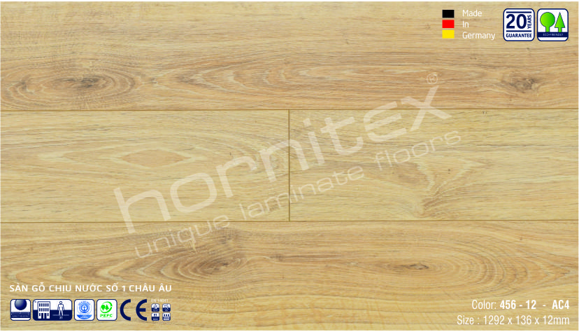 Sàn gỗ Hornitex 456-12 bản dày 12mm thuộc dòng “sàn gỗ công nghiệp cao cấp” không sợ nước