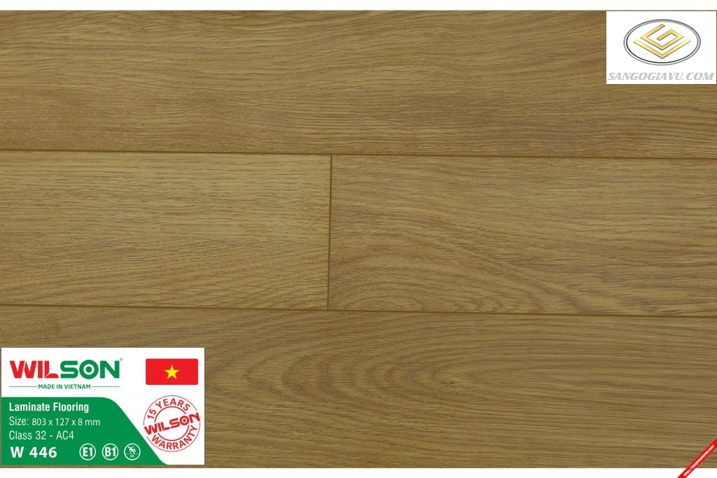 Sàn gỗ Wilson là một trong những thương hiệu sàn gỗ công nghiệp Việt Nam chất lượng cao. Do được sản xuất trong nước với nguồn nguyên liệu sẵn có nên giá sàn gỗ rẻ hơn các loại ván sàn nhập khẩu. Bằng công nghệ của CHLB Đức nên chất lượng sàn gỗ Wilson ổn định đạt tiêu chuẩn Châu Âu, màu sắc đẹp được thiết kế như sàn gỗ cao cấp.