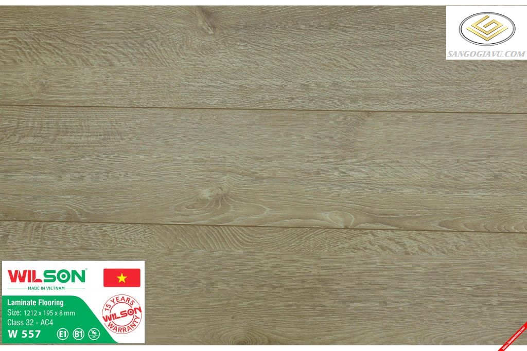 Sàn gỗ Wilson là một trong những thương hiệu sàn gỗ công nghiệp Việt Nam chất lượng cao. Do được sản xuất trong nước với nguồn nguyên liệu sẵn có nên giá sàn gỗ rẻ hơn các loại ván sàn nhập khẩu. Bằng công nghệ của CHLB Đức nên chất lượng sàn gỗ Wilson ổn định đạt tiêu chuẩn Châu Âu, màu sắc đẹp được thiết kế như sàn gỗ cao cấp.